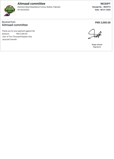 کمیٹی کی رقم سینڈ کر کے اسکرین شاٹ ہمیں واٹس ایپ کریں اور رسید لینا نہ بھولیں ۔